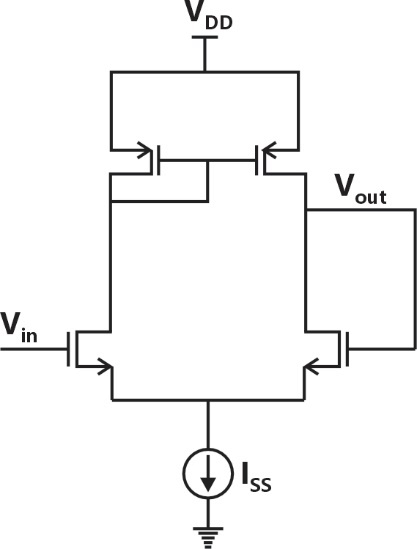 For the closed loop amplifier circuit shown below, the magnitude of open loop low frequency small signal voltage gain is 40. All the transistors are biased in saturation. The current source is ideal. Neglect body effect, channel length modulation and intrinsic device capacitances. The closed loop low frequency small signal voltage gain (rounded off to three decimal places) is________.