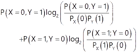 The mutual information I between two random variables and is defined as: