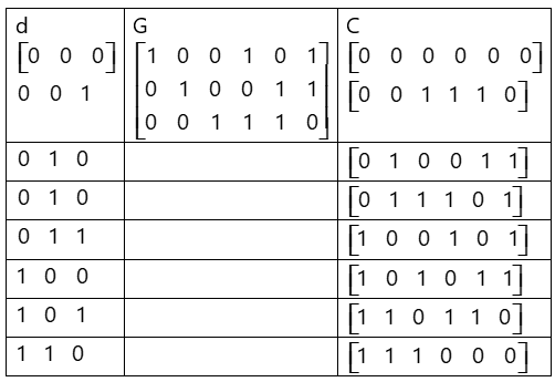 The minimum Hamming distance between codewords equals _________ (answer in integer).