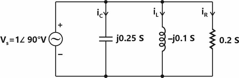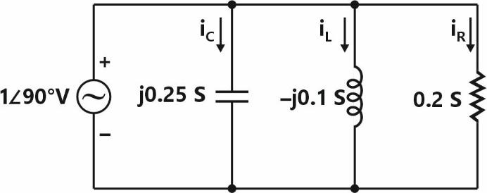 IncorrectLet , and be the currents flowing through the capacitor, inductor, and resistor, respectively, in the circuit given below. The AC admittances are given in Siemens (S).
