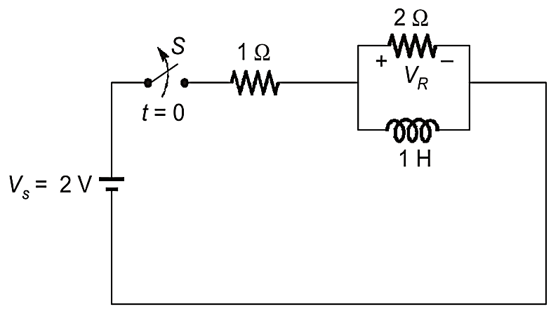 In the circuit shown below, switch S was closed for a long time. If the switch is opened at t=0, the maximum magnitude of the voltage in volts, is ________ (rounded off to the nearest integer).