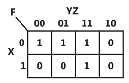 Consider the following sum of products expression, F.
