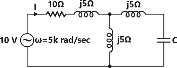 In the given circuit, the value of capacitor C that makes current I = 0 is _________ μF.