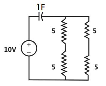 The initial charge in the 1 F capacitor present in the circuit shown is zero. The energy in joules transferred from the DC source until steady state condition is reached equals ________ . (Give the answer up to one decimal place).